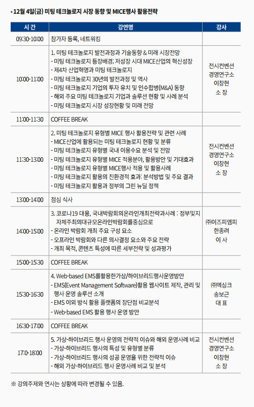 포스트코로나시대 MICE산업 변화에 대응 할 수 있는 업무역량을 갖출 수 있도록 미팅테크놀로지를 MICE행사에